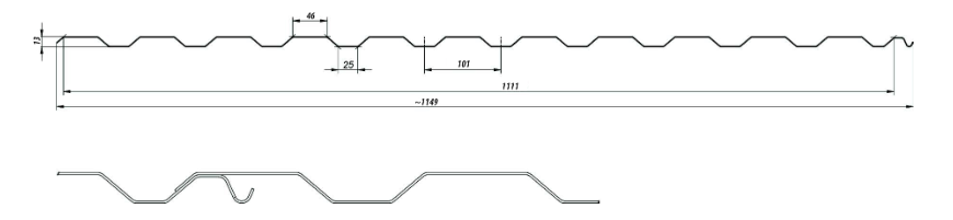 Mit einer Gesamtbreite von 1149 mm und einer praktischen Nutzbreite von 1111 mm ermöglicht das T-14 Plus eine zügige und effiziente Verlegung. Die 25 mm breite Tiefsicke und die 46 mm breite Obergurt bieten eine ausgewogene Konstruktion für vielfältige Anwendungen.